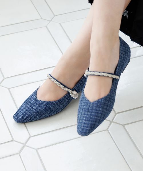 ビジューストラップツィードパンプス/564106
