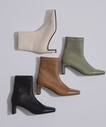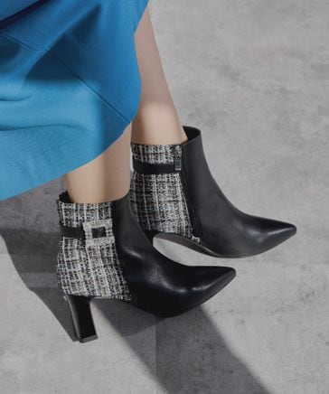 【本革】オブリークトゥ変形ヒールブーツ / 524409