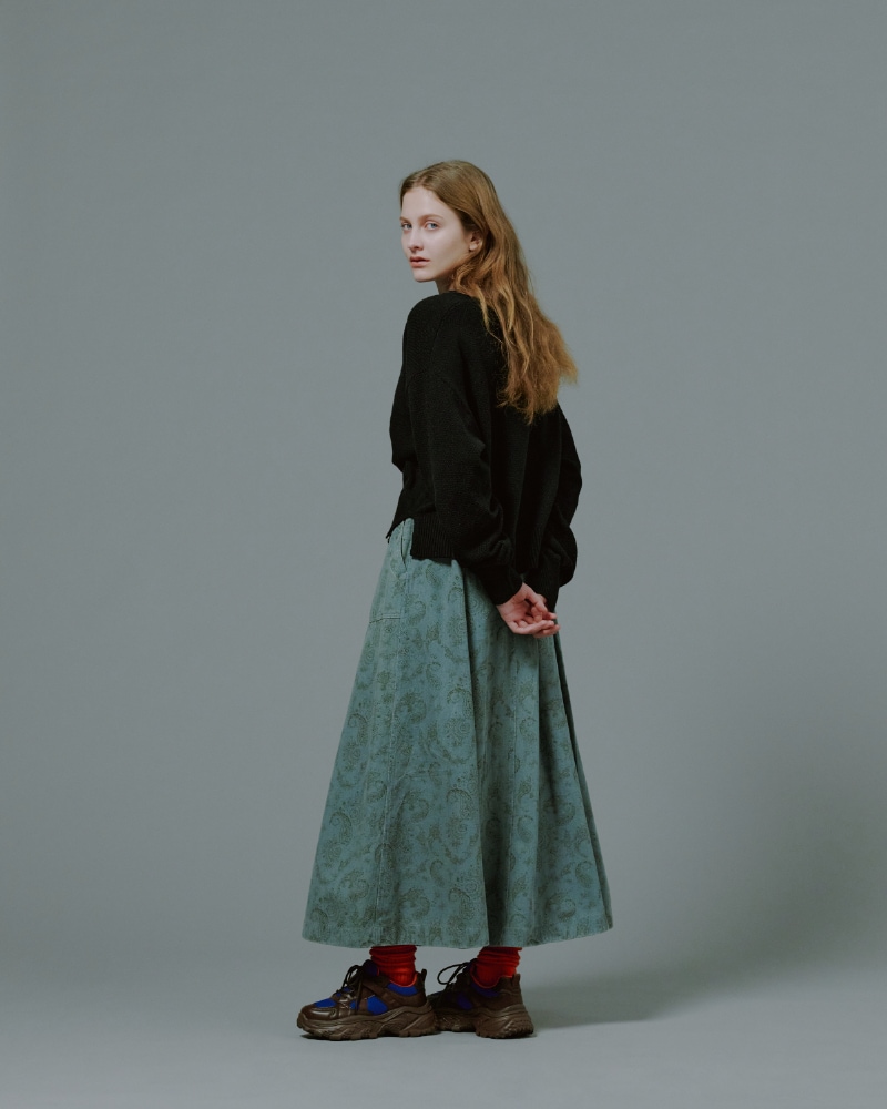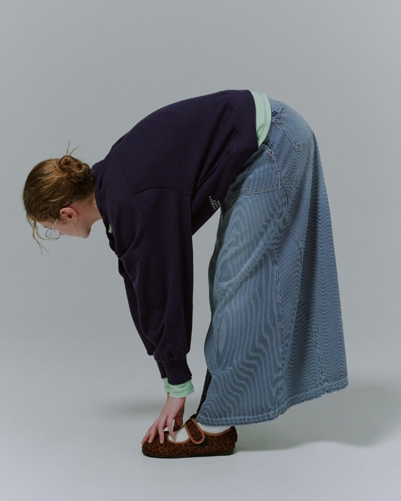 伸縮性のある生地感+ウエストゴムのらくちん使用で