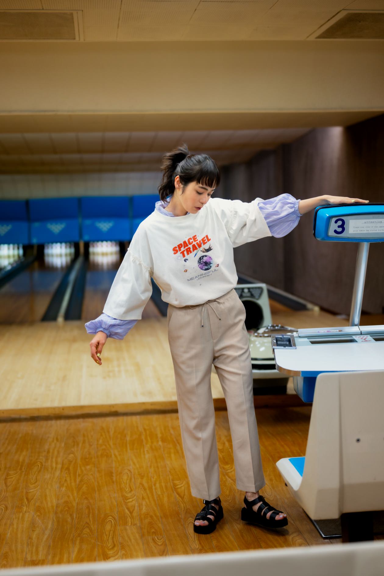 Tシャツをさらりと一枚で着るのも良いけれど、少し捻りの効いた着こなしにトライするなら、シャツとのレイヤードがおすすめ。ブルーストライプのクリーンさと、ポップなプリントTシャツのミックス感を楽しんで。