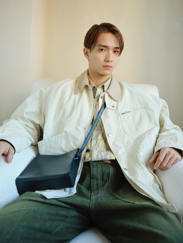 淡い配色が軽やかな印象のハンティングブルゾンに注目。シャツのレイヤリングでメリハリをつくることでこなれ感をアップ。カーキのペインターデニムはカジュアルなスタイルを品よく格上げし、着こなしをフレッシュにしてくれる。