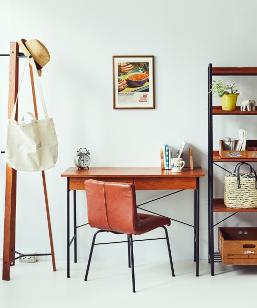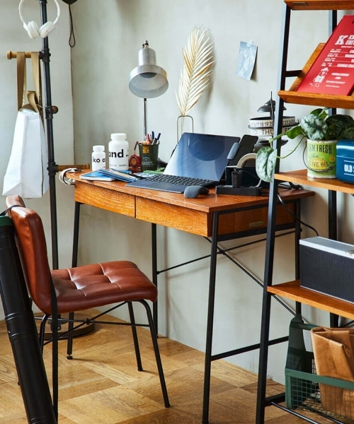 落ち着いた雰囲気の木目×スチール素材で、