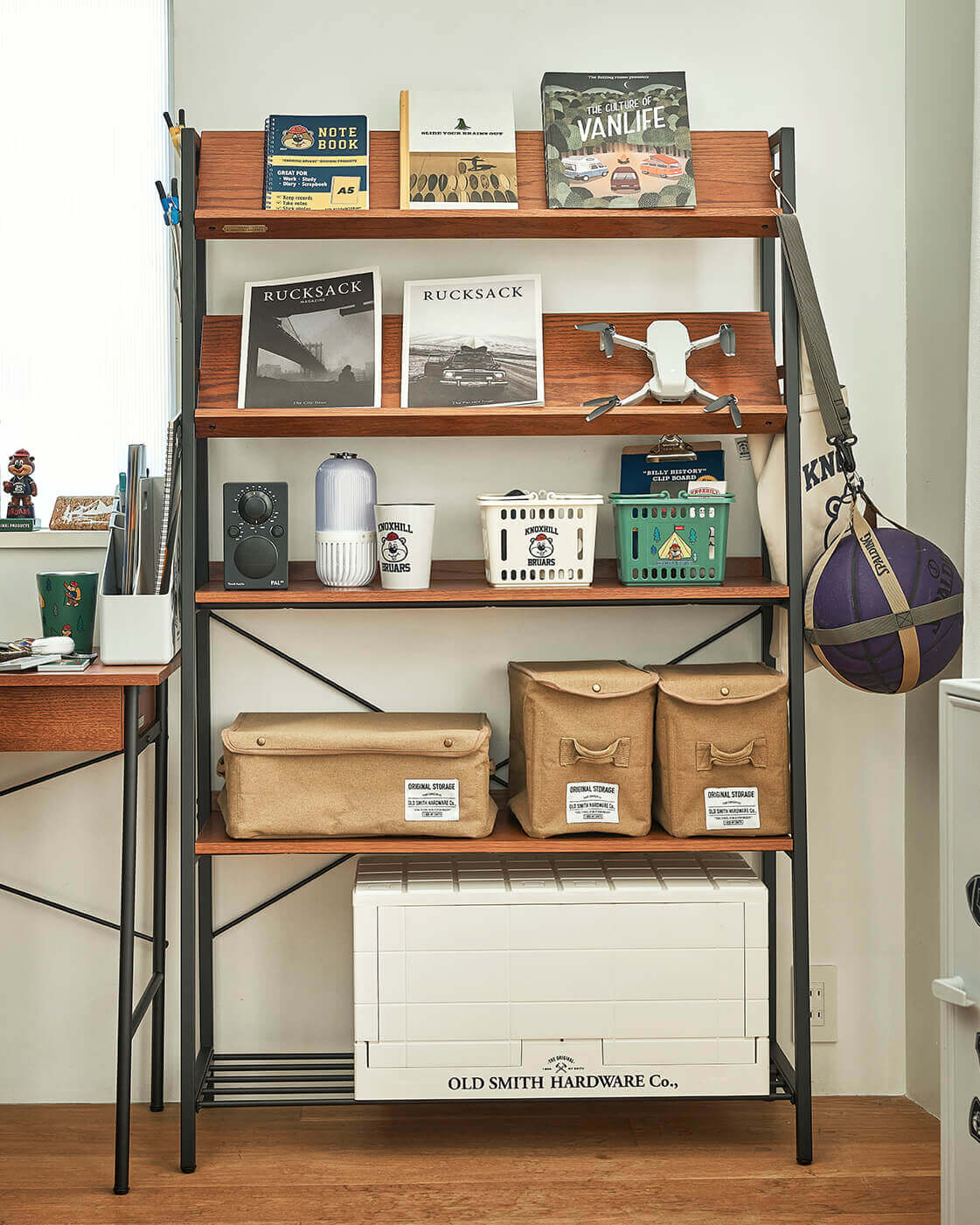 棚板に小物を収納できるのも人気のポイント。