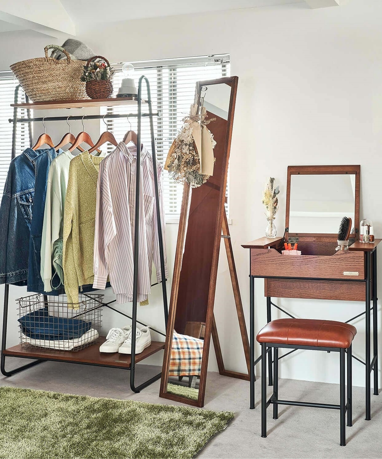 ドレッサーやラックを同シリーズで揃えれば、
