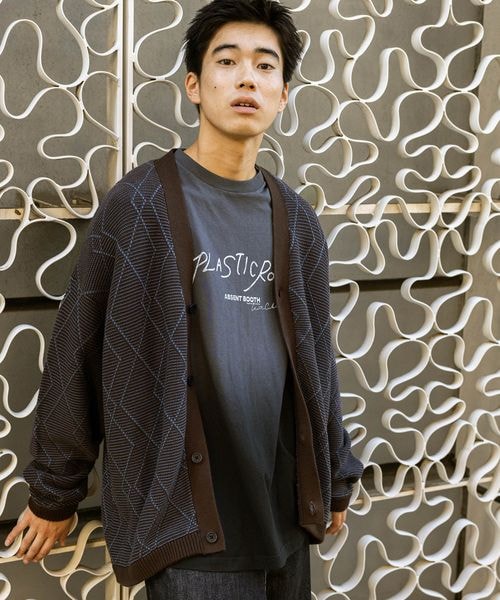 ジオメ柄ニットVネックカーディガン