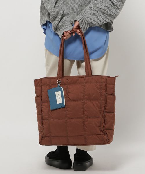 《A4サイズ収納可能》ポーチ付きキルトトートバッグL