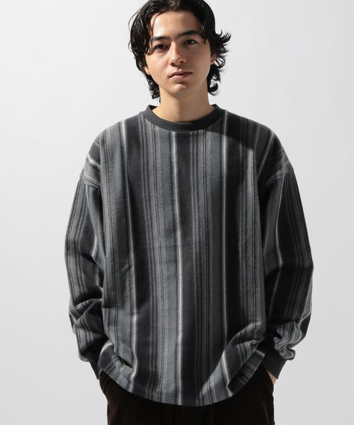 起毛ストライププルオーバー