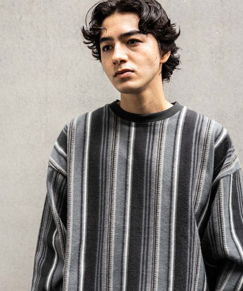 起毛ストライププルオーバー