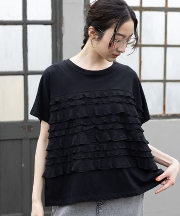 フリルメッシュフレンチプルオーバー