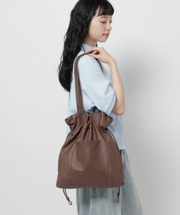 《A4サイズ収納可能》レザー巾着トートバッグ