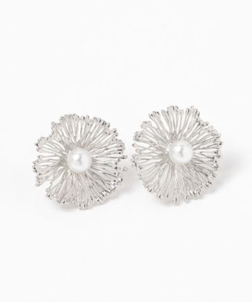 メタルパール調フラワーピアス