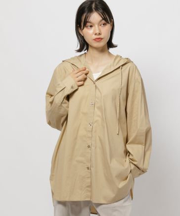 フロントボタンフードシャツ