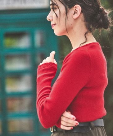 カシミヤ混配色ニットプルオーバー