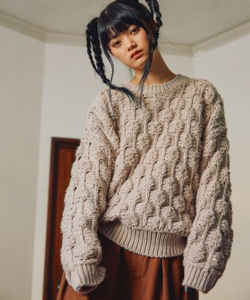 ケーブルフリンジニットプルオーバー