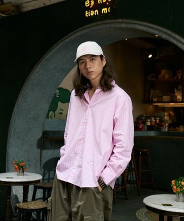 【バー・ハオ・ティアン・ミー】コラボ プリントストライプシャツ【UNISEX】