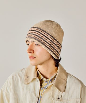 ラインコットンニット編みハット