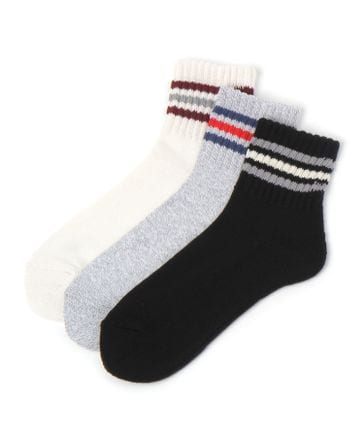 【Healthknit(ヘルスニット)】スラブMIX配色3本ライン 3Pソックス