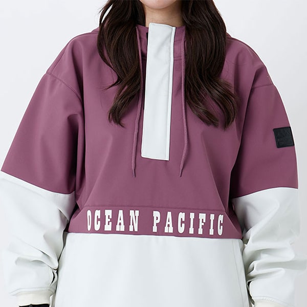 切り替えデザインと胸元の「OCEAN PACIFIC」ロゴが、レトロスポーティなムードを演出します。
