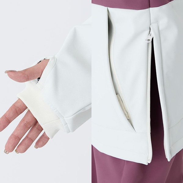 裾ファスナーやサイドポケット、袖のサムホール付きインナーリブなど、使いやすさにもこだわりました。