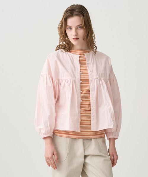 コットンポプリン ギャザー長袖シャツ WOMEN