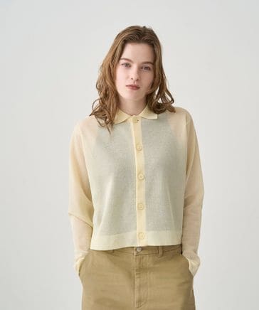 ジャカード 衿付きニットカーディガン