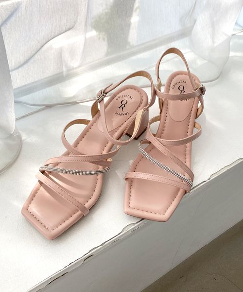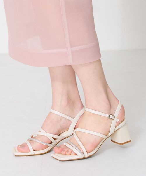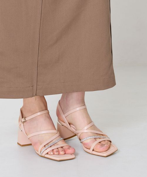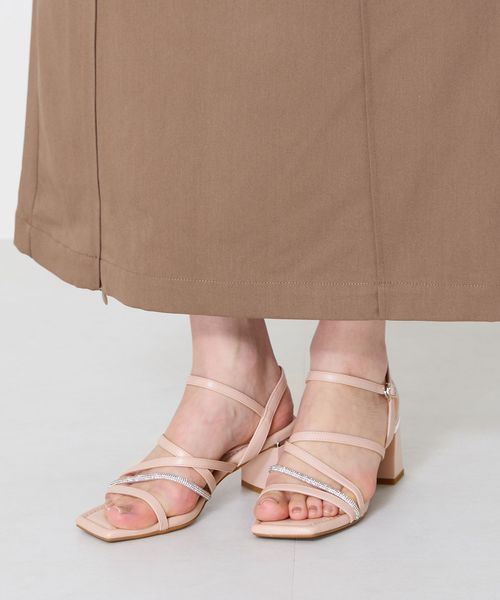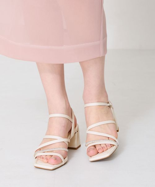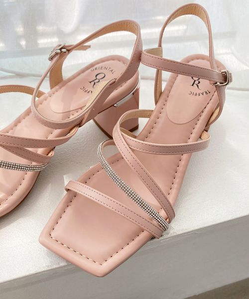 甲ストラップの1本にラインストーンを配置することで大人エレガンスな雰囲気に。