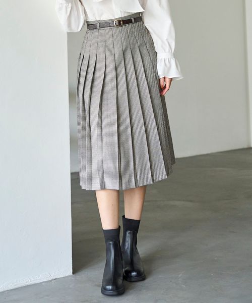≪予約≫【31 Sons de mode】ベルト付きミディプリーツスカート/TT537210