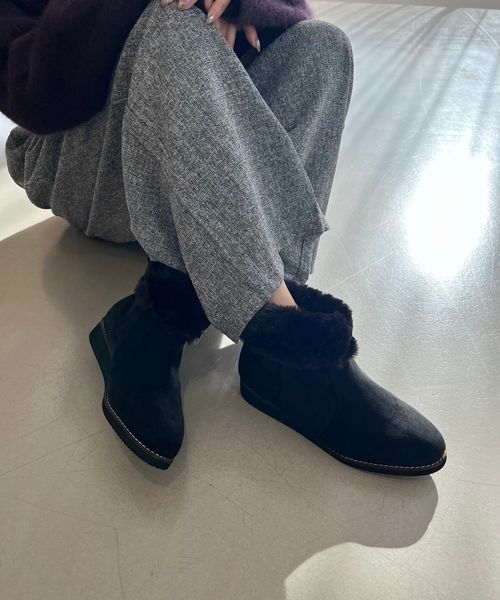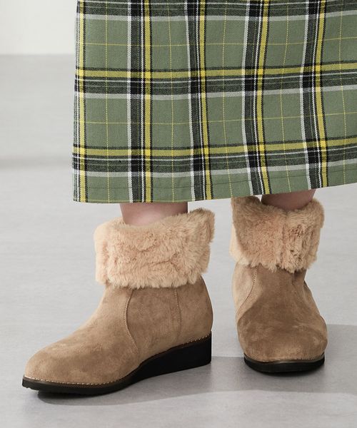 たっぷり ファー ウエッジソール ブーツ /52411 軽量 もこもこ