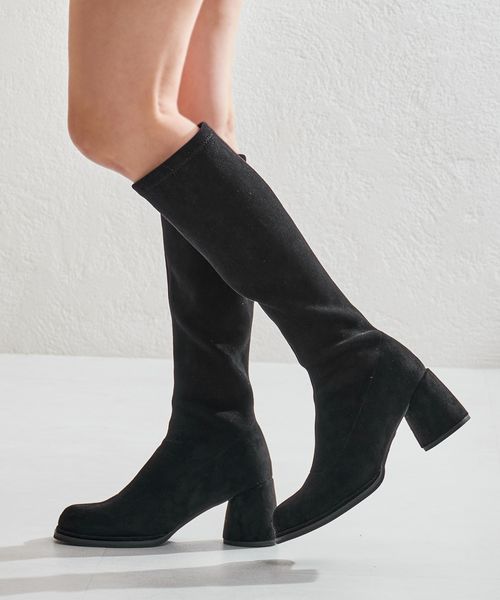 【予約】美脚 ピタッとフィットスエードヒールロングブーツ/55502