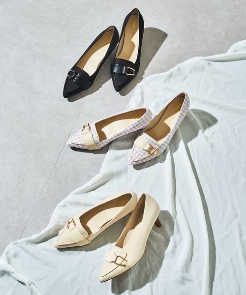 【予約】サイドバックルポインテッドトゥパンプス/62104