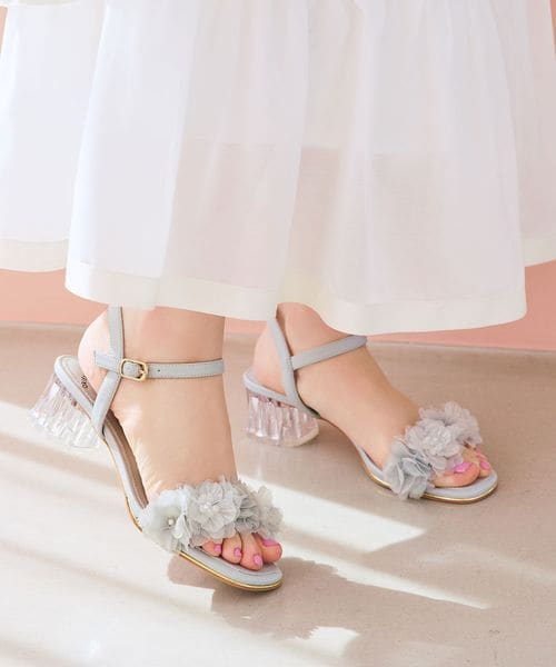フラワービーズクリアヒールサンダル/66202