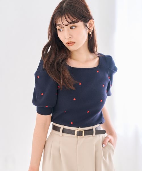 【31 Sons de mode】5分袖ハート刺繍ニット/TT628305