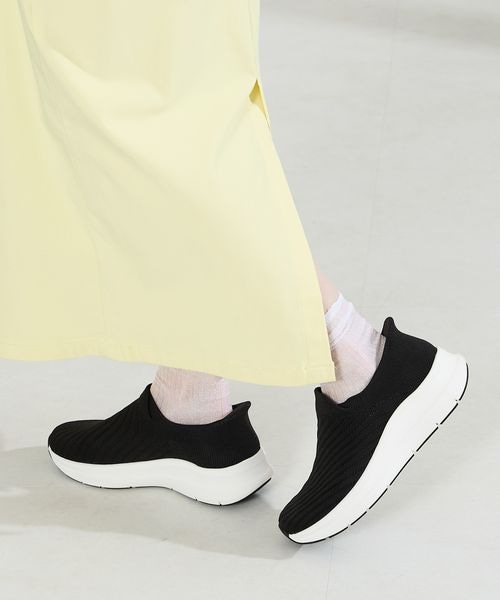 【瞬間フィット】ストライプニット防水スリッポンスニーカー/OT3801