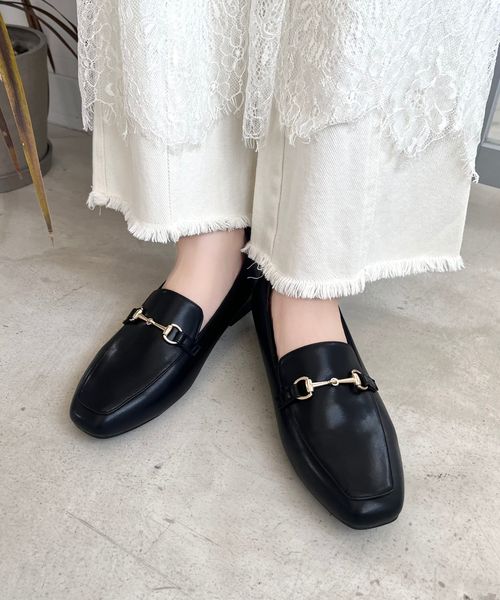 【つま先・かかとクッション入り】スクエアトゥビットモチーフローファー/R-3210