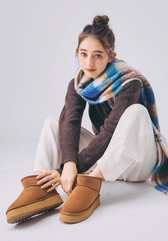 【軽量】厚底ムートンショートブーツ/35401