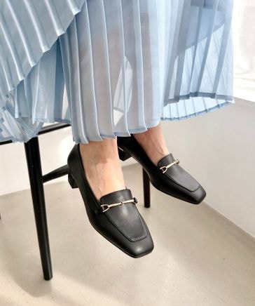 メタリックラインビットヒールローファー/62101