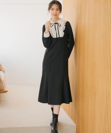 【MISCH MASCH】襟付きラッフルコンビマーメイドワンピース/MM547406