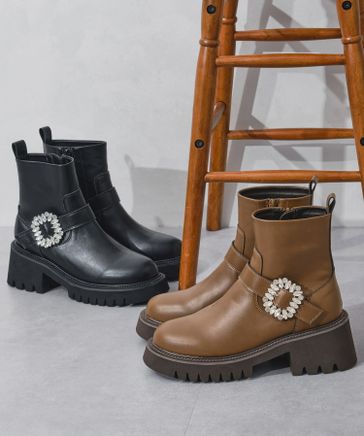 【予約】 厚底 フロントジップ ショートブーツ /51413