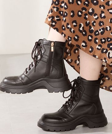 【予約】【厚手クッション】厚底 タンクソール ラウンド ショートブーツ /52409