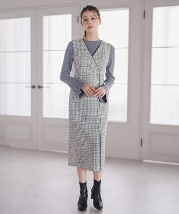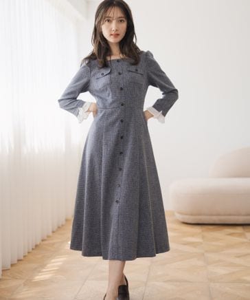 【MISCH MASCH】フロント釦ツイード風フレアワンピース/MM547402