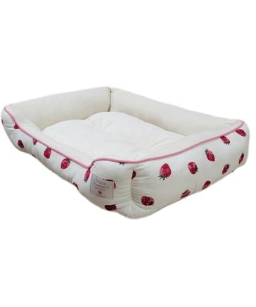 【犬猫用】いちごプリント ダブルガーゼベッド アイボリー Mサイズ
