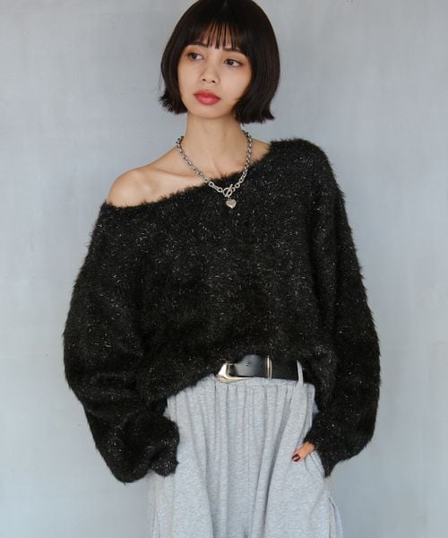 【前後2way】ラメキャットヤーン2WAYプルオーバー