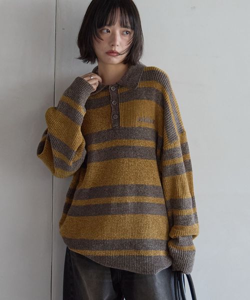 【PBLIM】ベロアボーダーニット