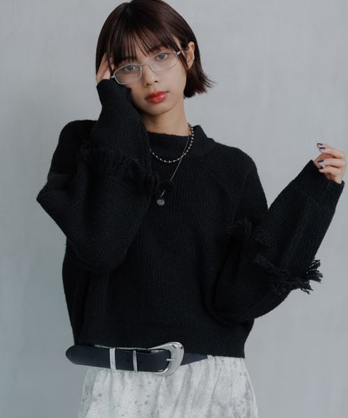 フリンジスリーブショートハイネック