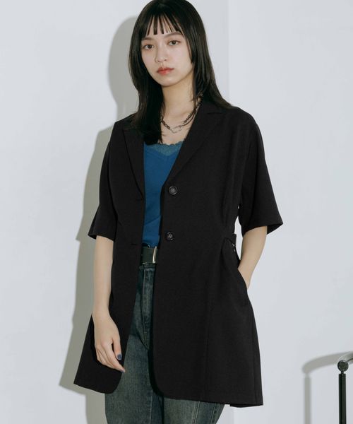 【紫外線カット/接触冷感/イージーケア】シアバスウエストベルトショートスリーブジャケット【先行予約】