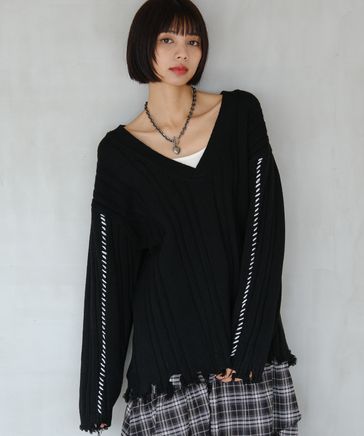 【再入荷】クラウドシャギーVネックニット【WEB限定アイテム】