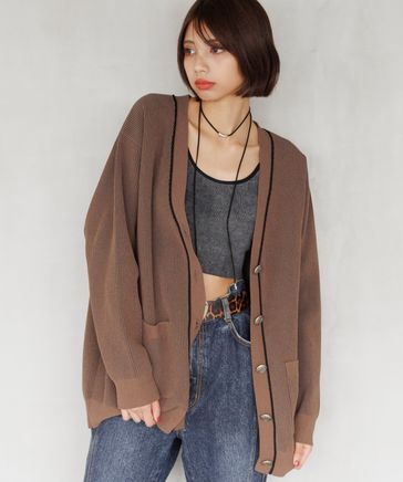 ライトモールストライプリブVカーディガン