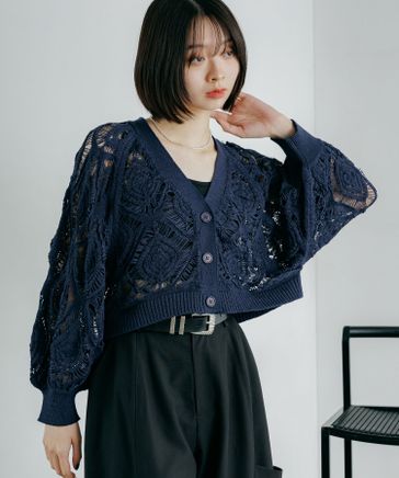 【一部WEB先行予約/新色追加】スカシリーフニットボレロ