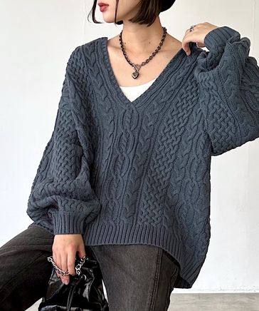 【周年祭期間限定価格】ケーブルVネックプルオーバー【WEB限定】