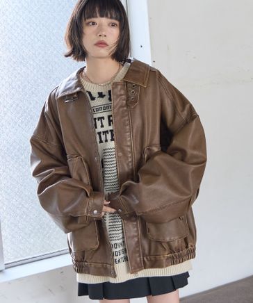 【PBLIM/シルエットが選べる】ウォッシュドレザーブルゾン